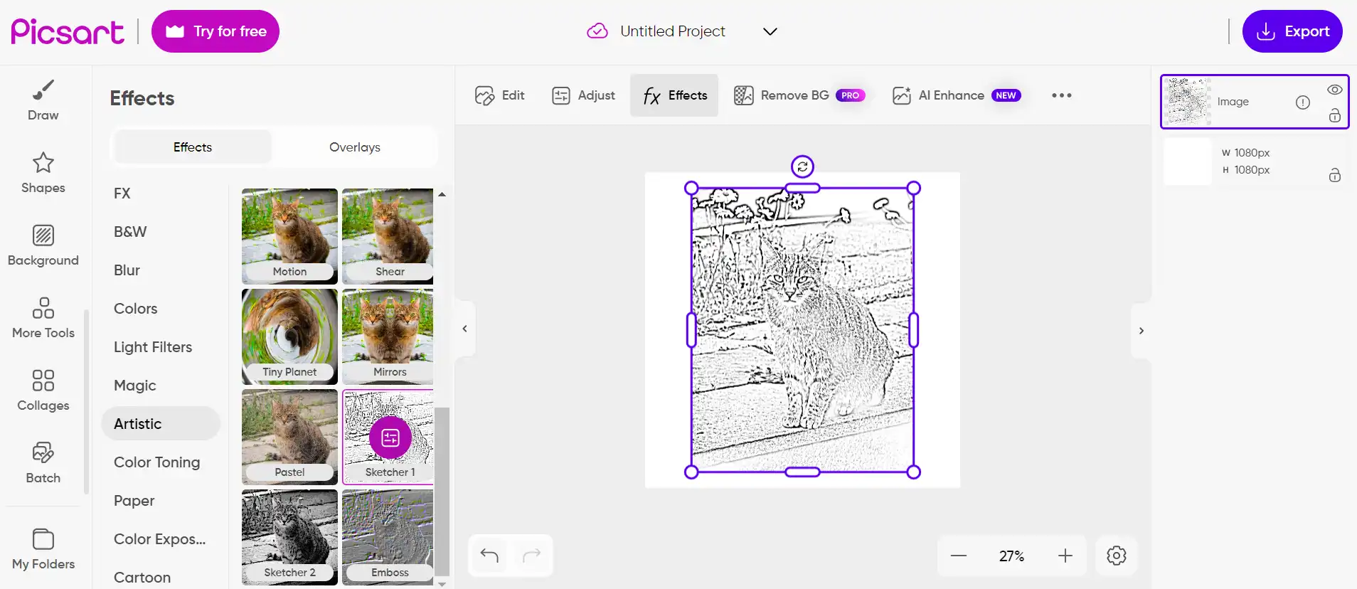 El Efecto Sketch de Picsart es una herramienta que te permite convertir una foto en silueta lineal online con diversos estilos disponibles. Es fácil de usar y puede ahorrarte tiempo. Puedes usarlo en tus propias fotos o en las de tus amigos.