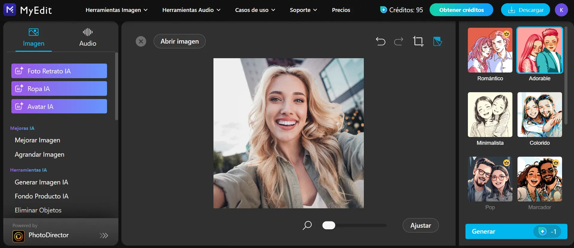 Característica | PhotoDirector (App Móvil) | MyEdit (Herramienta Online) |
