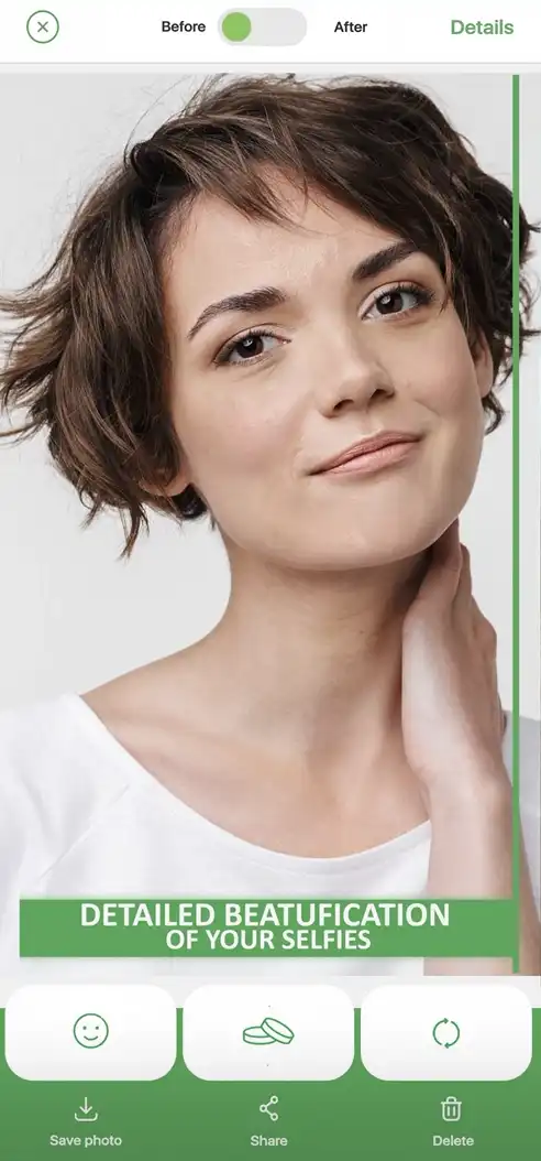 - Presiona el botón con forma de papel para ver el antes y el después de la foto.