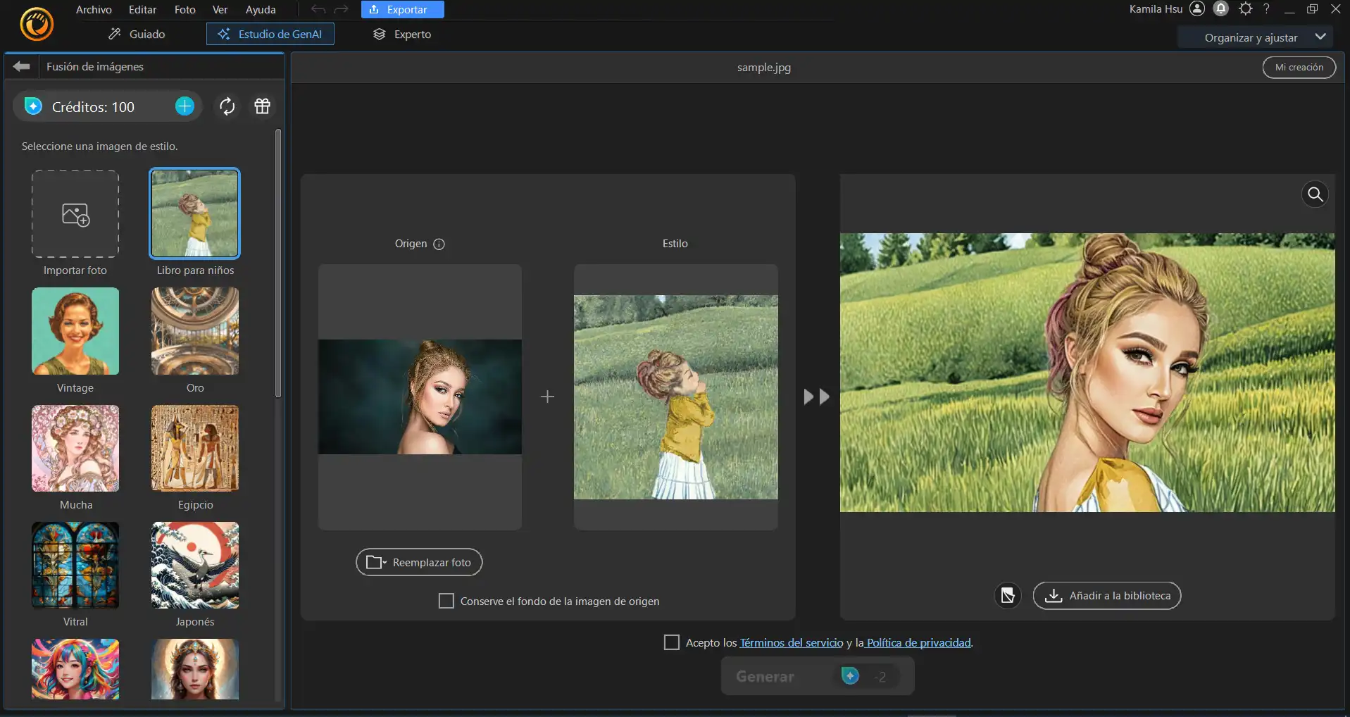 Haz clic en Generar y espera a que la IA fusione tus dos imágenes.
