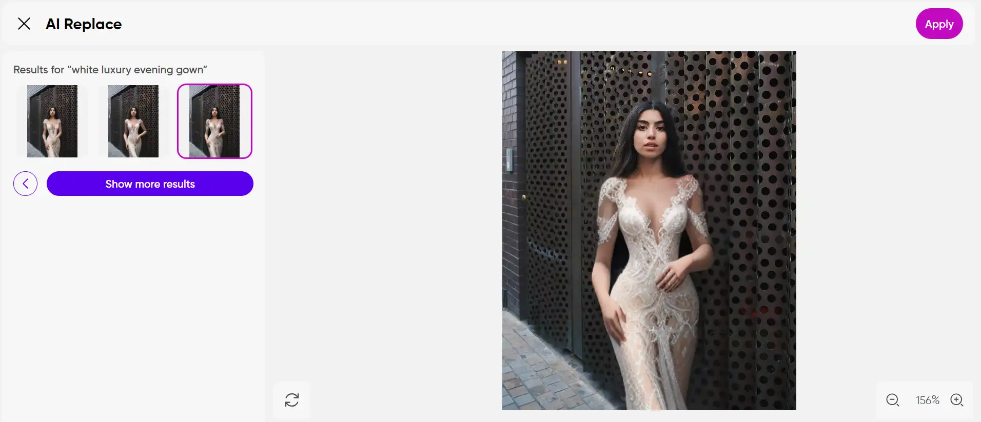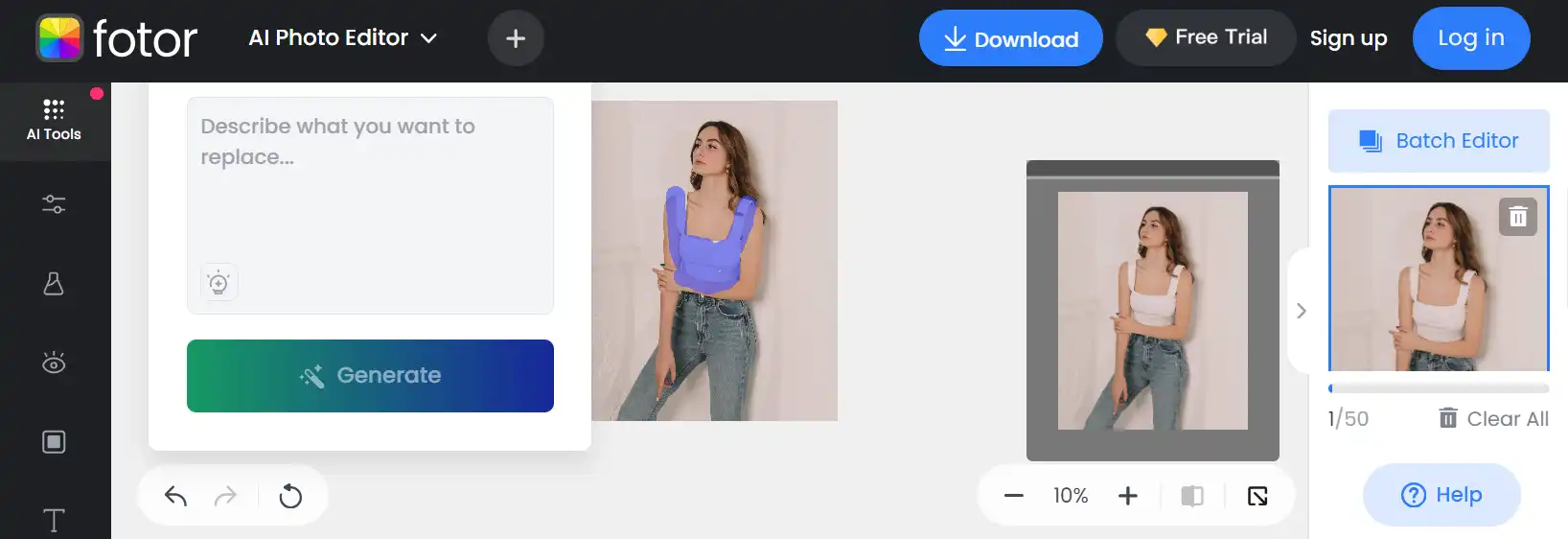 - Deja que la IA haga su magia y genere tus imágenes con ropa virtual.
