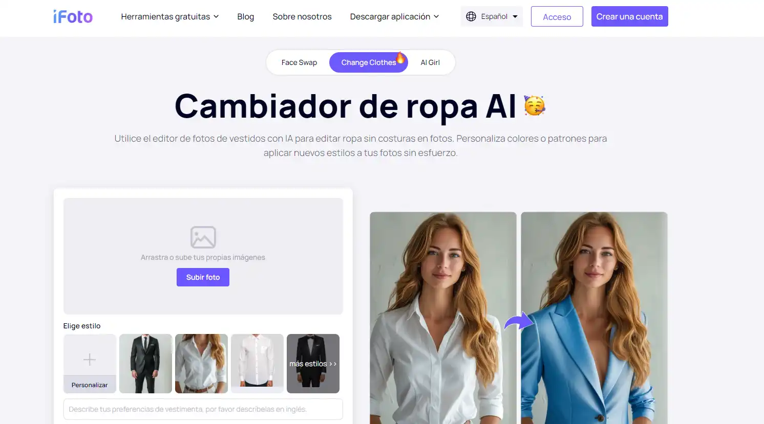 - Cambia ropa con IA con facilidad