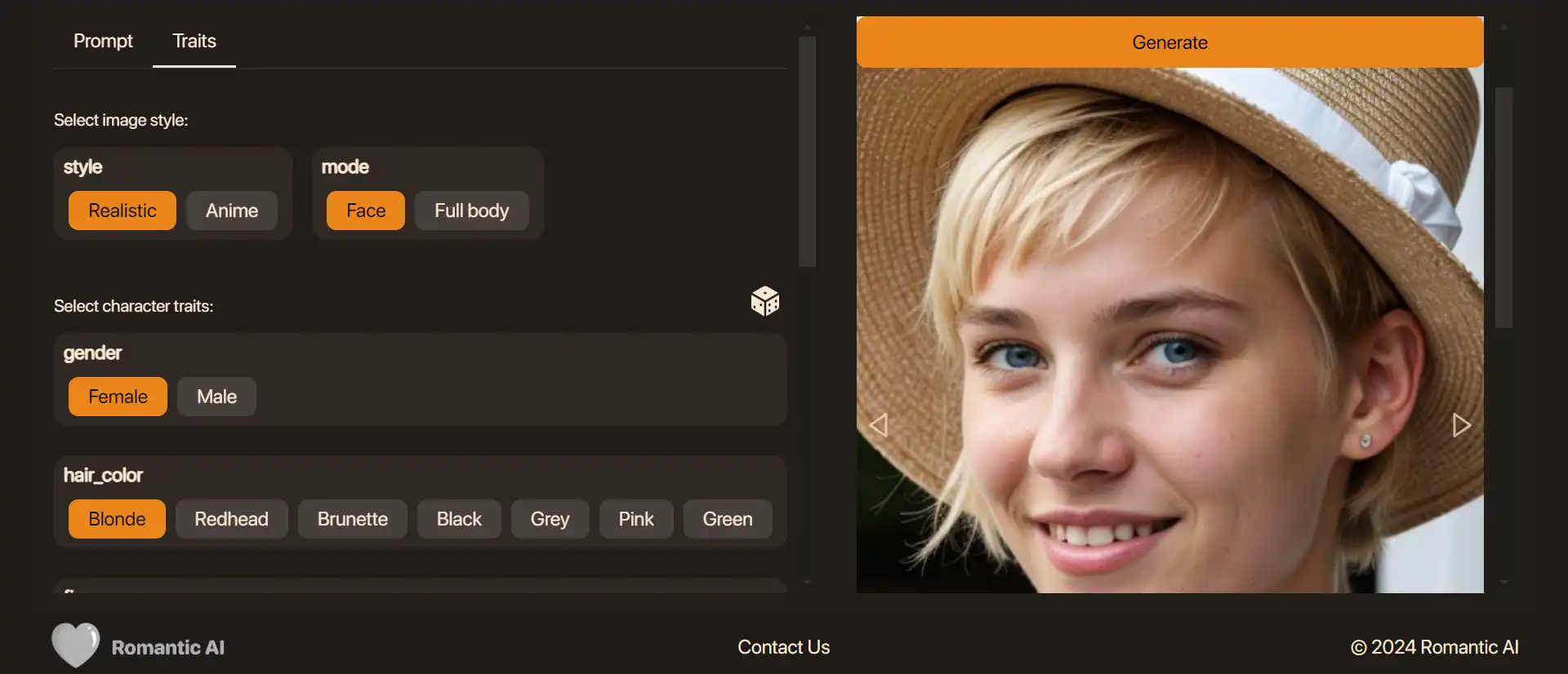 - Haz clic en Generar y espera a que la IA haga su magia y cree tu novia virtual.