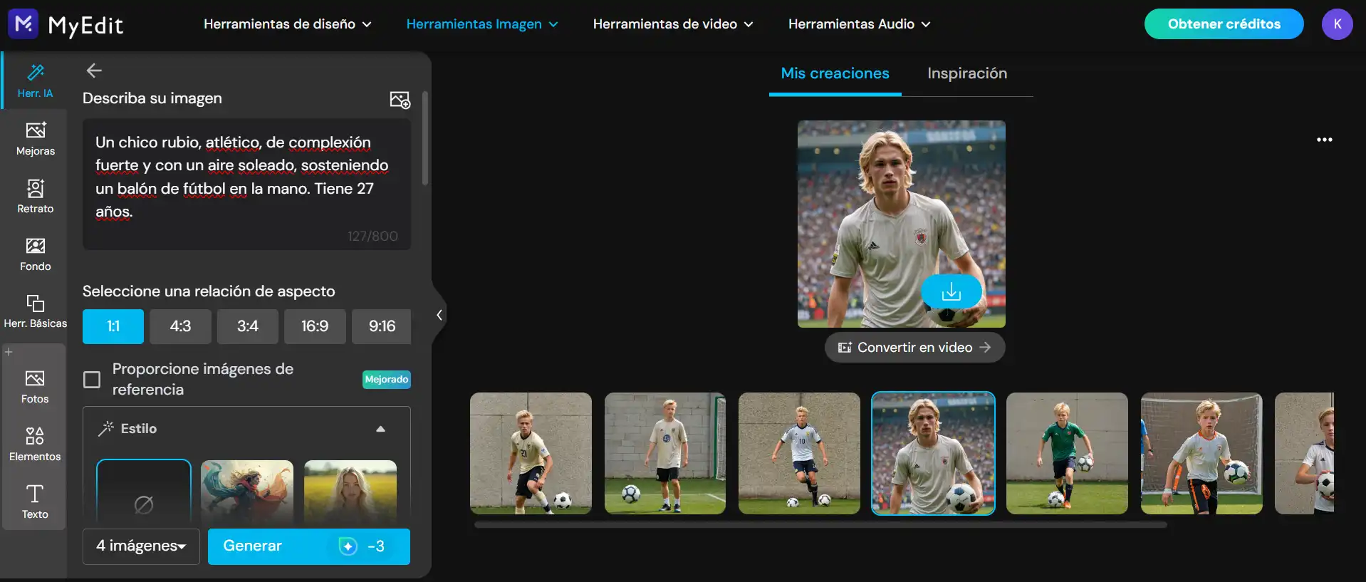 MyEdit te permite crear una novio virtual online con su poderoso generador de imágenes IA. Aquí te explico cómo usarlo paso por paso: