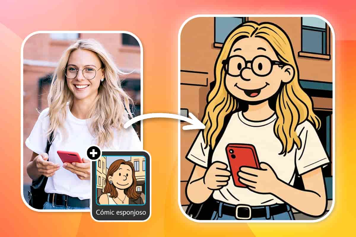 El filtro Cómic esponjoso recrea un estilo suave y caricaturesco muy similar al universo de Snoopy y Charlie Brown, manteniendo tus rasgos reconocibles.